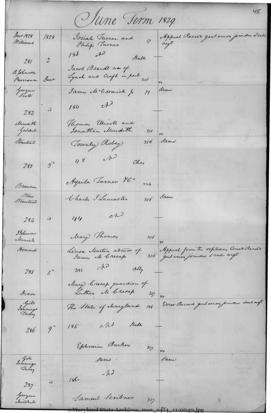 Maryland State Archives COURT OF APPEALS (Dockets) msa_s414_11-0049 Enlarge and print image (635K)      |