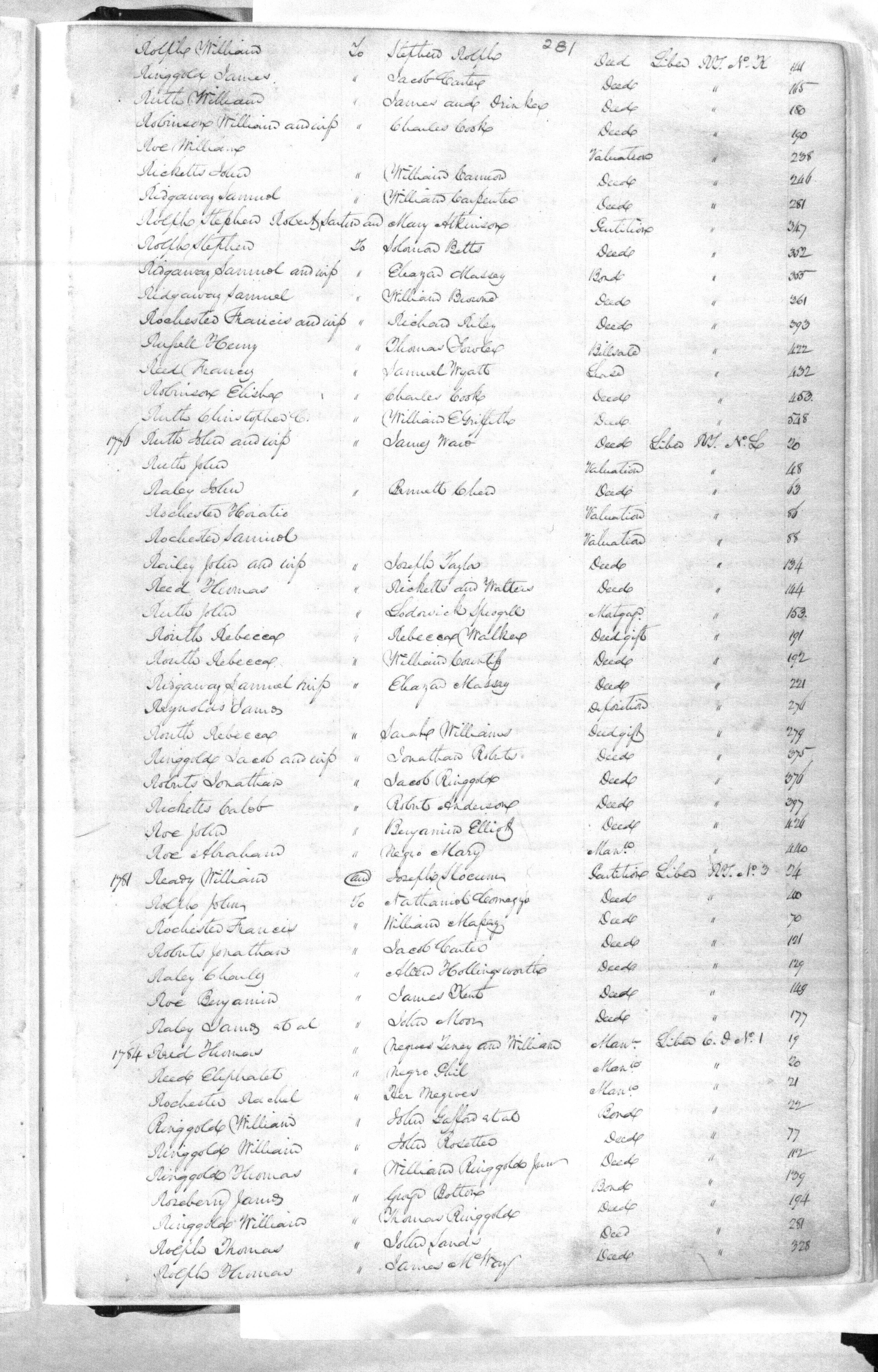 QUEEN ANNE'S COUNTY (Land Records, Grantor Index), 1706-1854 MSA C1430 & MSA C1431 MSA C1430 & MSA C1431, Image No: 281 Enlarge and print image (2M) |