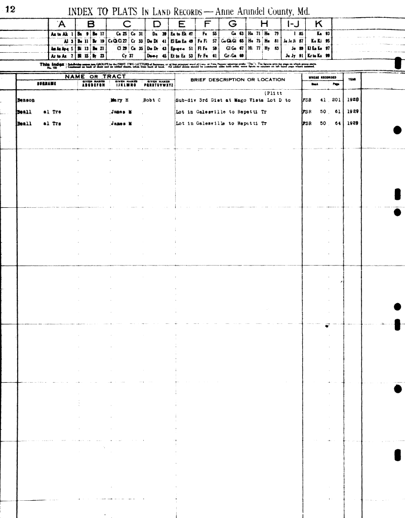 (Plats from Land Records, Index)