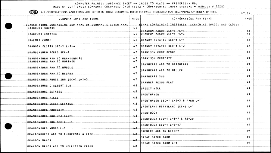 FREDERICK COUNTY CIRCUIT COURT (Plat Book, Index) 1907-1994 MSA C2320-1MSA C2320-1, Image No: 18 Enlarge and print image (110K) |