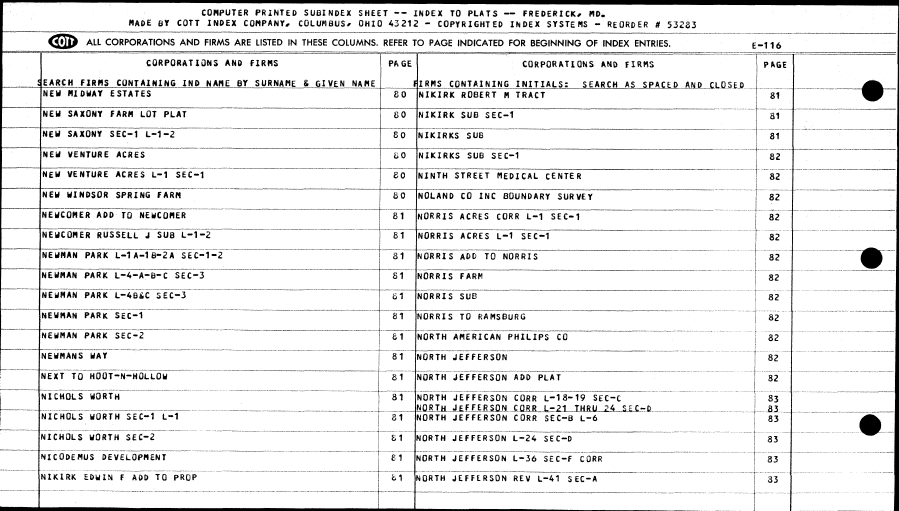 FREDERICK COUNTY CIRCUIT COURT (Plat Book, Index) 1907-1994 MSA C2320-1MSA C2320-1, Image No: 402 Enlarge and print image (127K) |
