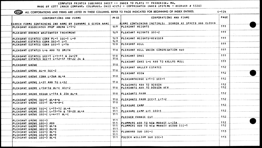 FREDERICK COUNTY CIRCUIT COURT (Plat Book, Index) 1907-1994 MSA C2320-1MSA C2320-1, Image No: 410 Enlarge and print image (137K) |