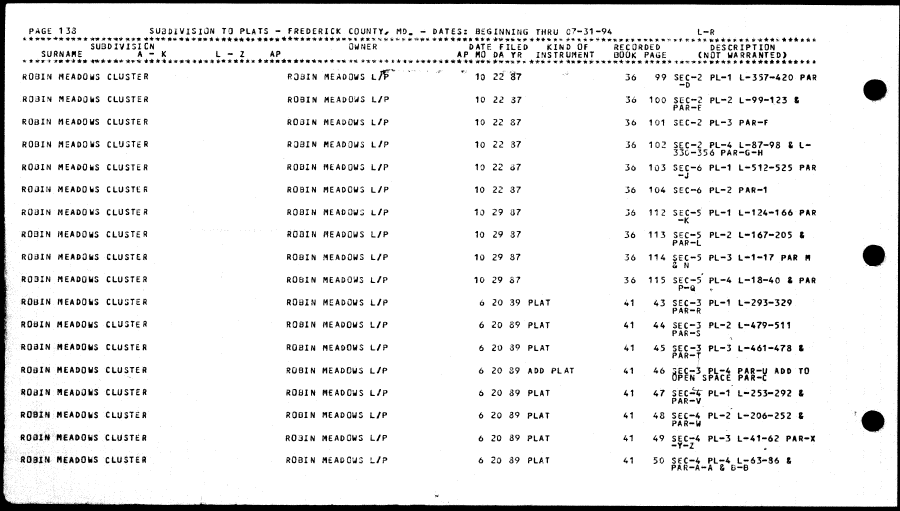 ROBIN MEADOWS CLUSTER ROSIN MEADOWS L/P 10 22 87 36 101 SEC-2 PL-3 PAR-F