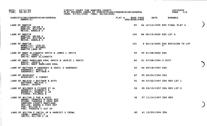 HARFORD COUNTY CIRCUIT COURT (Plats, Index) 1992-2000 MSA C2462-3-1 MSA C2462-3-1, Image No: 116 Enlarge and print image (41K) |