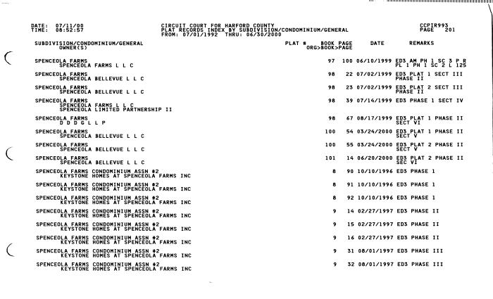 HARFORD COUNTY CIRCUIT COURT (Plats, Index) 1992-2000 MSA C2462-3-1 MSA C2462-3-1, Image No: 201 Enlarge and print image (54K) |