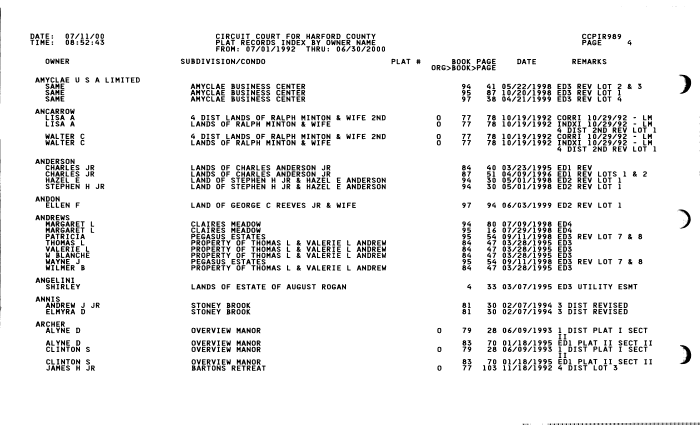 HARFORD COUNTY CIRCUIT COURT (Plats, Index) 1992-2000 MSA C2462-3-2 MSA C2462-3-2, Image No: 4 Enlarge and print image (63K) |