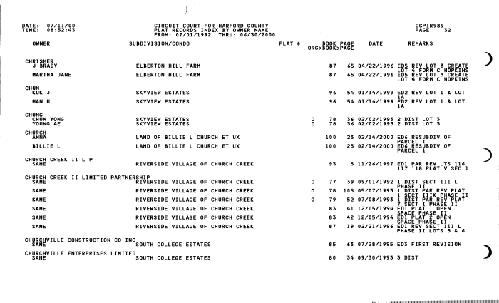 HARFORD COUNTY CIRCUIT COURT (Plats, Index) 1992-2000 MSA C2462-3-2 MSA C2462-3-2, Image No: 32 Enlarge and print image (51K) |