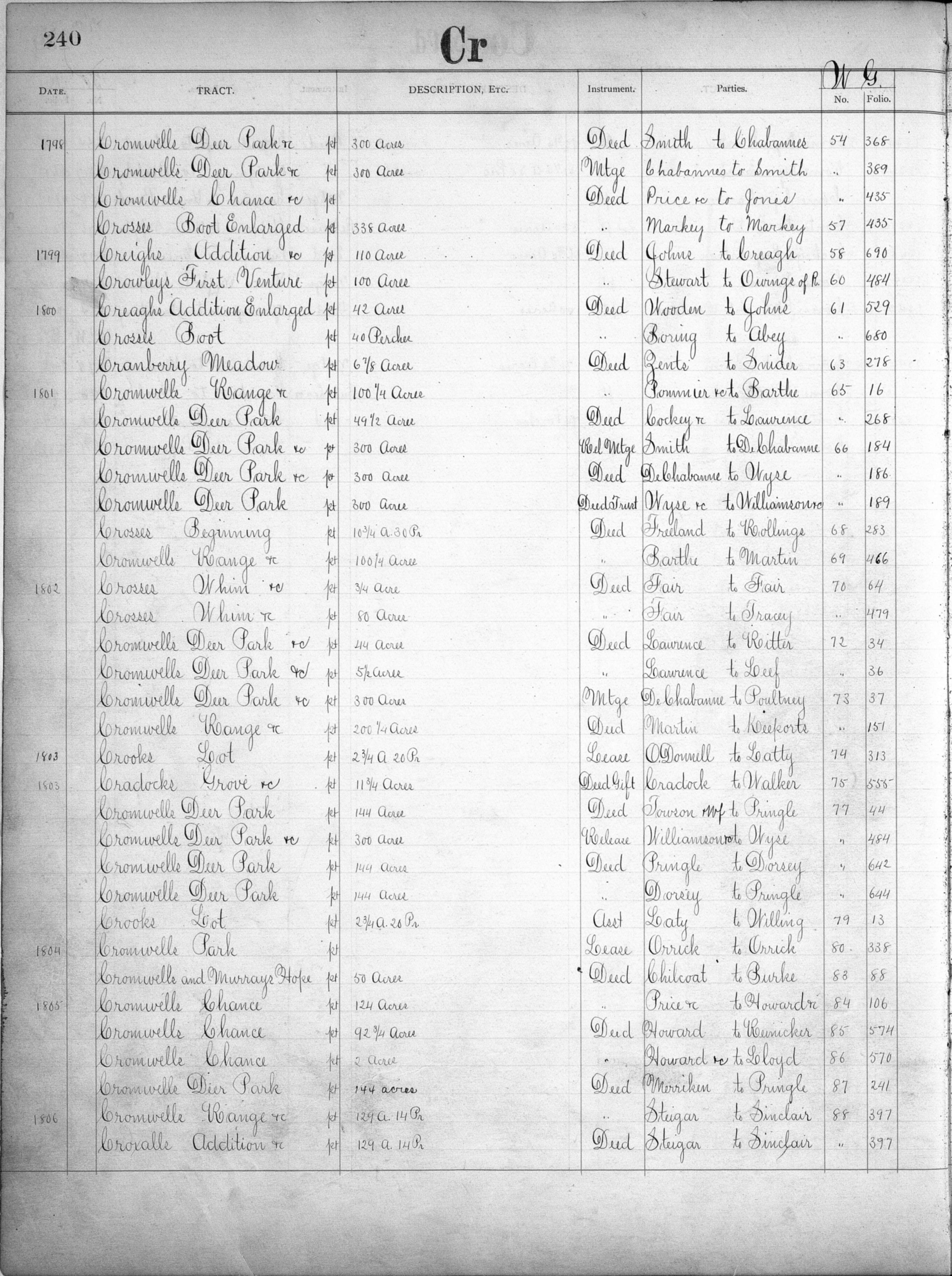 | BALTIMORE COUNTY COURT (Land Records, Tract Index) A-Jo, 1798-1851, MSA CE 15-1 Image No: 021110-0240 Enlarge and print image (1M) |