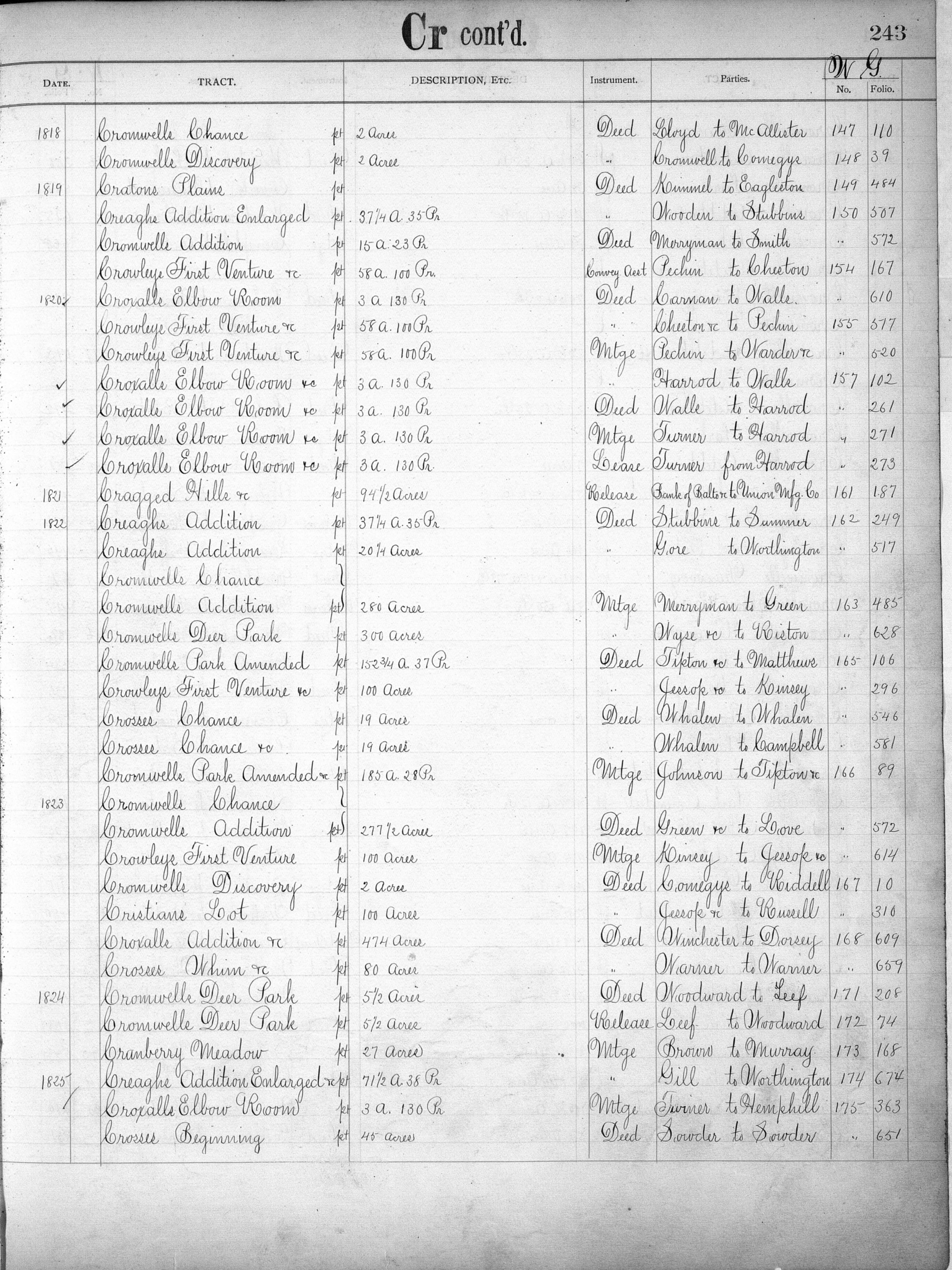 | BALTIMORE COUNTY COURT (Land Records, Tract Index) A-Jo, 1798-1851, MSA CE 15-1 Image No: 021110-0243 Enlarge and print image (1M) |
