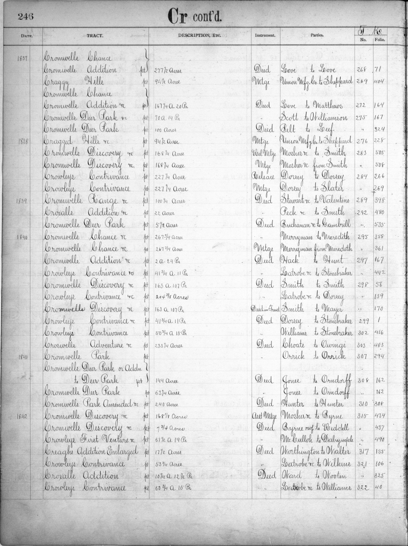 | BALTIMORE COUNTY COURT (Land Records, Tract Index) A-Jo, 1798-1851, MSA CE 15-1 Image No: 021110-0246 Enlarge and print image (1M) |