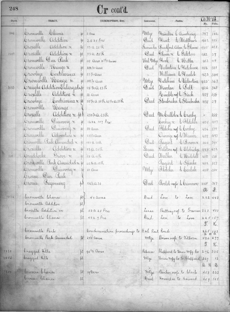 | BALTIMORE COUNTY COURT (Land Records, Tract Index) A-Jo, 1798-1851, MSA CE 15-1 Image No: 021110-0248 Enlarge and print image (1M) |