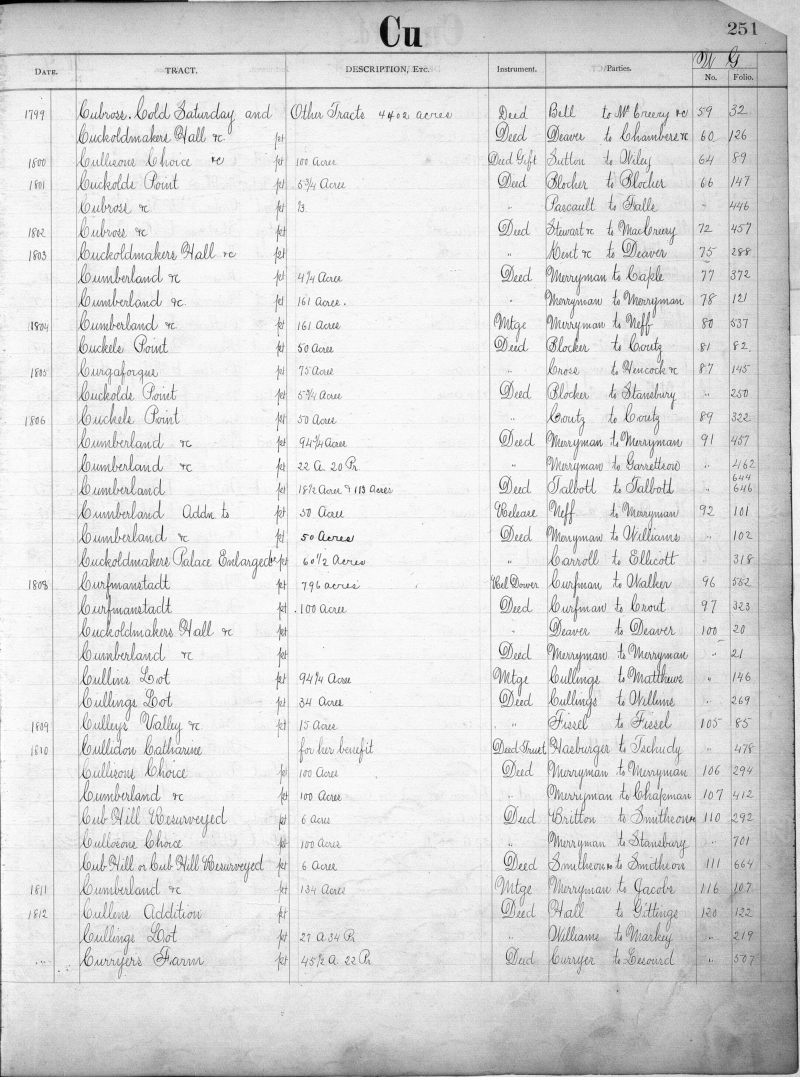 | BALTIMORE COUNTY COURT (Land Records, Tract Index) A-Jo, 1798-1851, MSA CE 15-1 Image No: 021110-0251 Enlarge and print image (1M) |