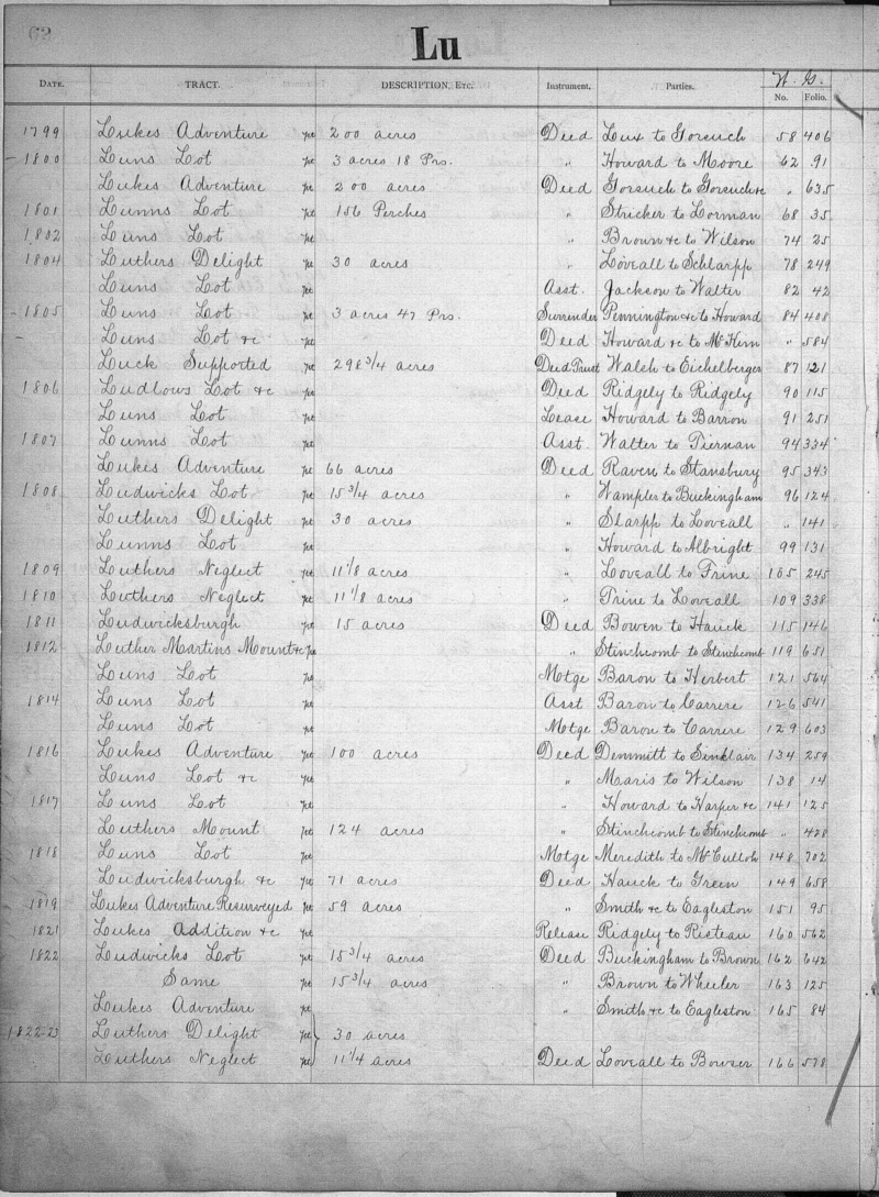 | BALTIMORE COUNTY COURT (Land Records, Tract Index) Jo-Z, 1798-1851, MSA CE 15-2 Image No: 021111-0062 Enlarge and print image (1M) |