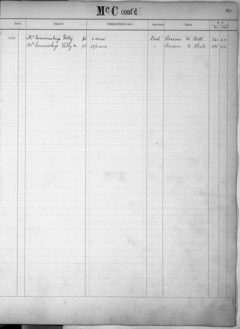 | BALTIMORE COUNTY COURT (Land Records, Tract Index) Jo-Z, 1798-1851, MSA CE 15-2 Image No: 021111-0089 Enlarge and print image (898K) |