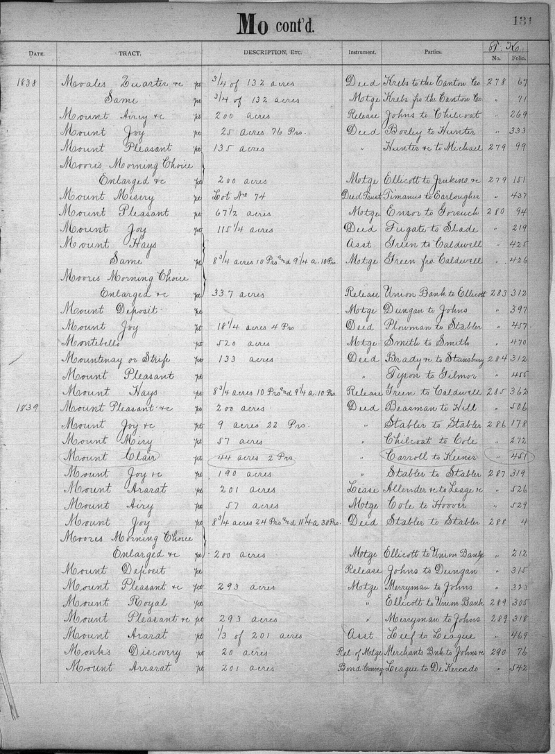 | BALTIMORE COUNTY COURT (Land Records, Tract Index) Jo-Z, 1798-1851, MSA CE 15-2 Image No: 021111-0131 Enlarge and print image (1M) |