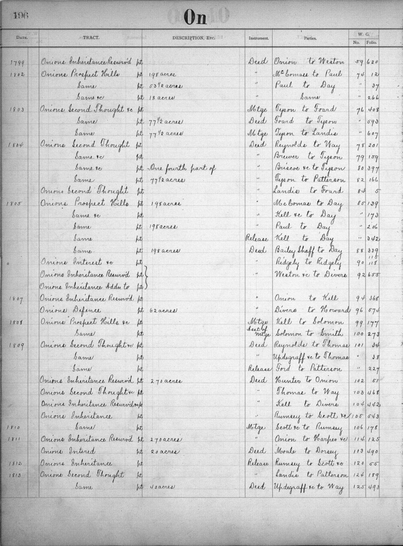 | BALTIMORE COUNTY COURT (Land Records, Tract Index) Jo-Z, 1798-1851, MSA CE 15-2 Image No: 021111-0196 Enlarge and print image (971K) |