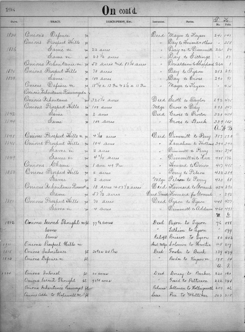 | BALTIMORE COUNTY COURT (Land Records, Tract Index) Jo-Z, 1798-1851, MSA CE 15-2 Image No: 021111-0198 Enlarge and print image (0M) |
