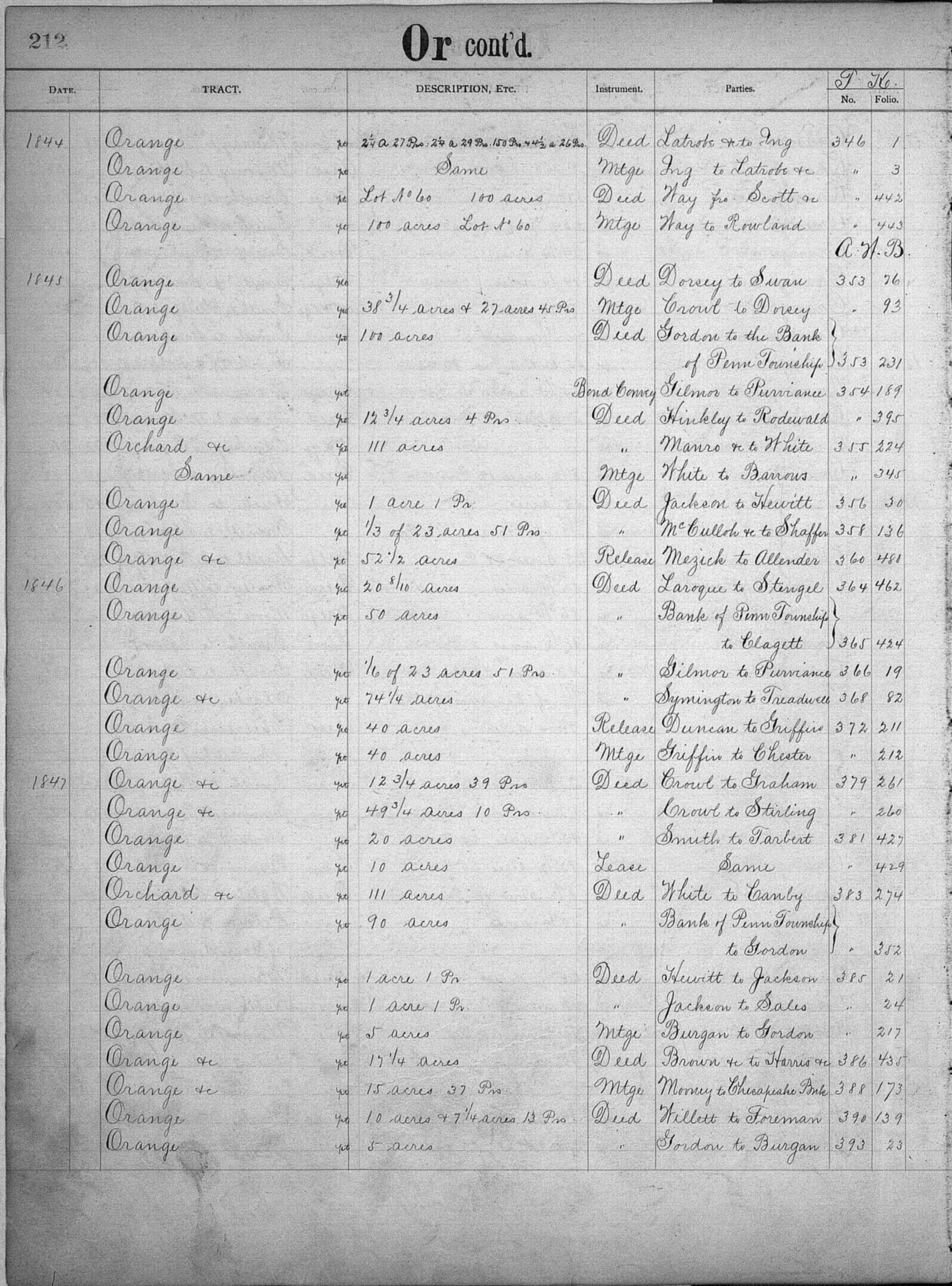 | BALTIMORE COUNTY COURT (Land Records, Tract Index) Jo-Z, 1798-1851, MSA CE 15-2 Image No: 021111-0212 Enlarge and print image (1M) |