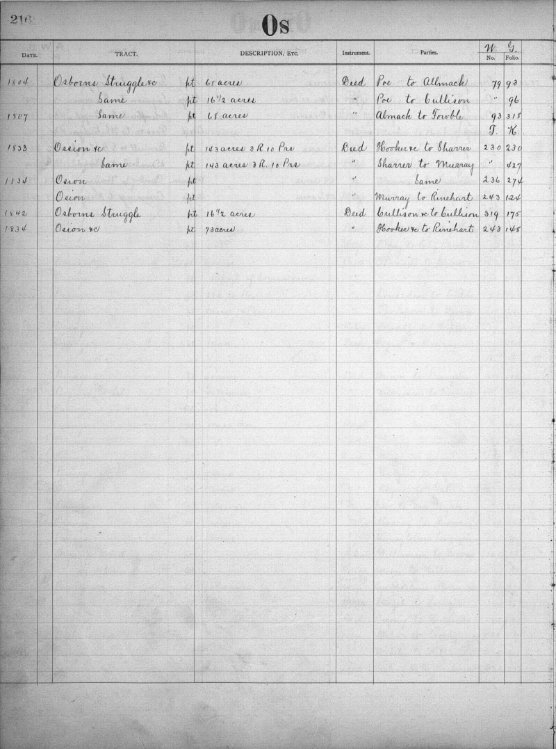 | BALTIMORE COUNTY COURT (Land Records, Tract Index) Jo-Z, 1798-1851, MSA CE 15-2 Image No: 021111-0216 Enlarge and print image (900K) |
