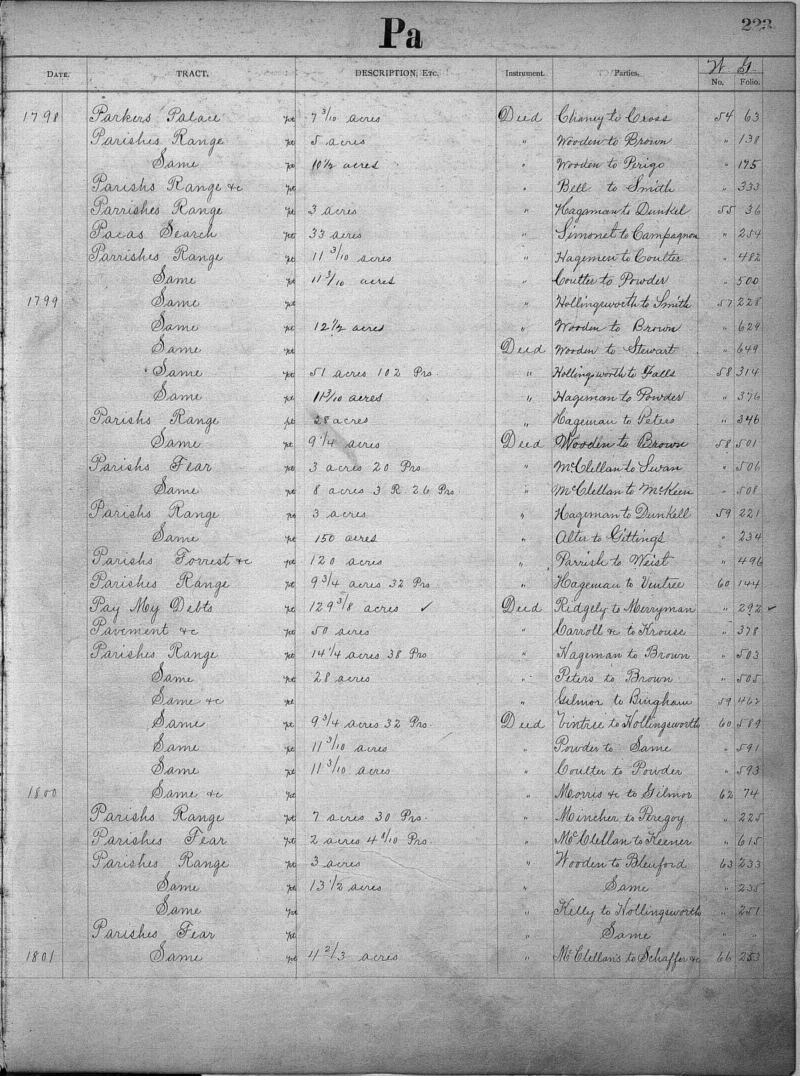 | BALTIMORE COUNTY COURT (Land Records, Tract Index) Jo-Z, 1798-1851, MSA CE 15-2 Image No: 021111-0223 Enlarge and print image (1M) |