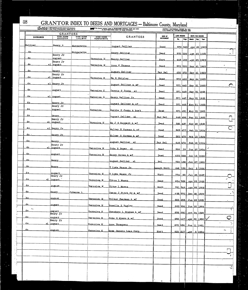 BALTIMORE COUNTY CIRCUIT COURT (Land Records, Grantor Index) 1922-1940, Sa-Sl, except Sch and Sh MSA CE39-23 Image No: ce39-23-0084 Enlarge and print image (86K) |