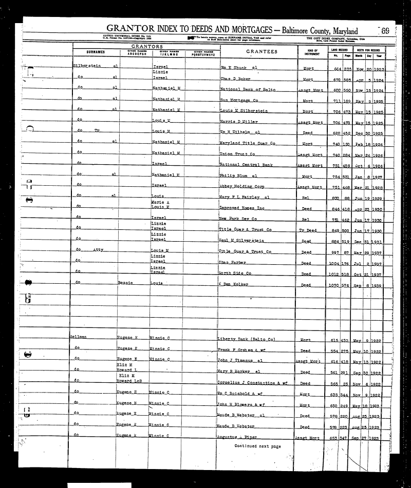 BALTIMORE COUNTY CIRCUIT COURT (Land Records, Grantor Index) 1922-1940, Sa-Sl, except Sch and Sh MSA CE39-23 Image No: ce39-23-0085 Enlarge and print image (84K) |