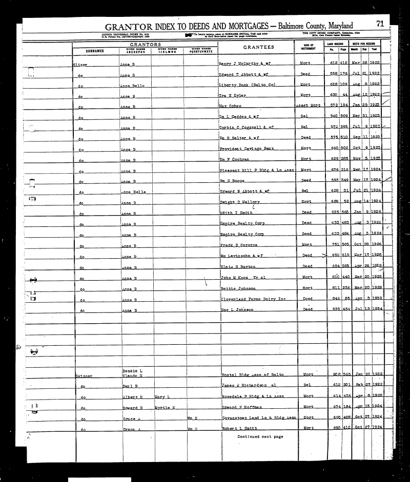 BALTIMORE COUNTY CIRCUIT COURT (Land Records, Grantor Index) 1922-1940, Sa-Sl, except Sch and Sh MSA CE39-23 Image No: ce39-23-0087 Enlarge and print image (77K) |