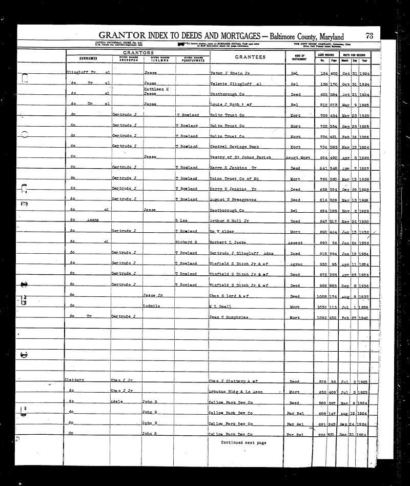 BALTIMORE COUNTY CIRCUIT COURT (Land Records, Grantor Index) 1922-1940, Sa-Sl, except Sch and Sh MSA CE39-23 Image No: ce39-23-0089 Enlarge and print image (78K) |