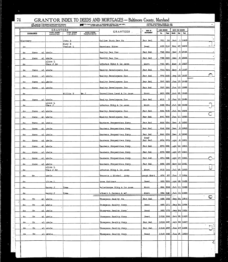 BALTIMORE COUNTY CIRCUIT COURT (Land Records, Grantor Index) 1922-1940, Sa-Sl, except Sch and Sh MSA CE39-23 Image No: ce39-23-0090 Enlarge and print image (86K) |