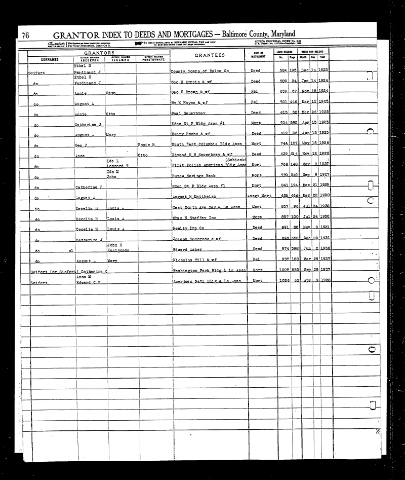 BALTIMORE COUNTY CIRCUIT COURT (Land Records, Grantor Index) 1922-1940, Sa-Sl, except Sch and Sh MSA CE39-23 Image No: ce39-23-0093 Enlarge and print image (74K) |