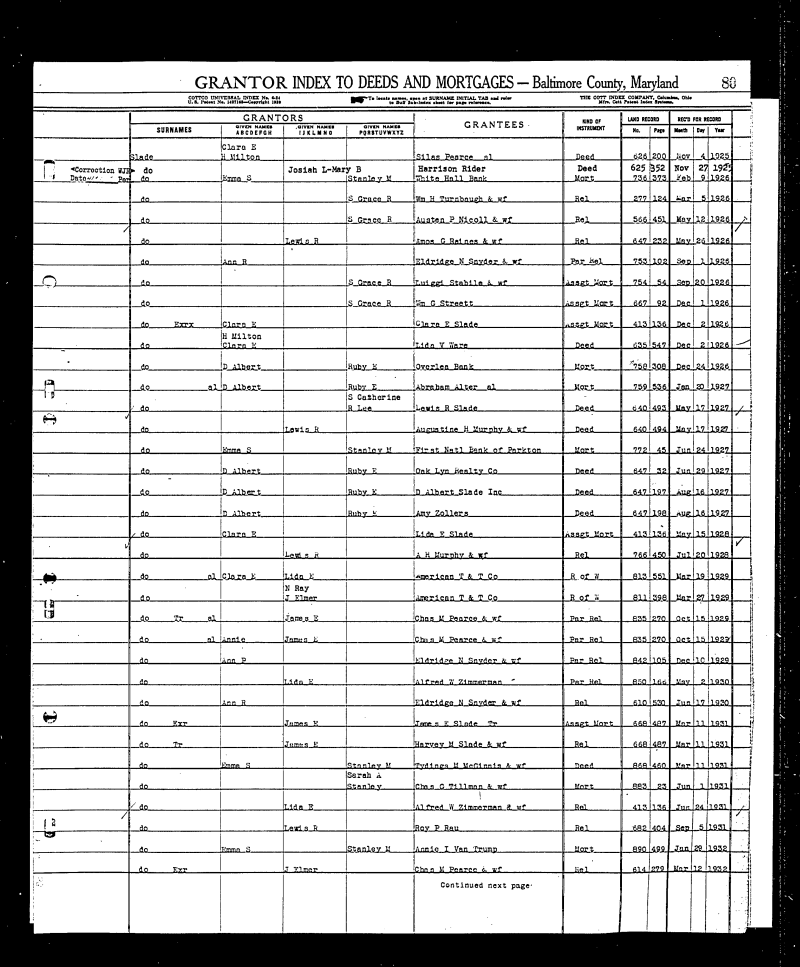 BALTIMORE COUNTY CIRCUIT COURT (Land Records, Grantor Index) 1922-1940, Sa-Sl, except Sch and Sh MSA CE39-23 Image No: ce39-23-0098 Enlarge and print image (82K) |
