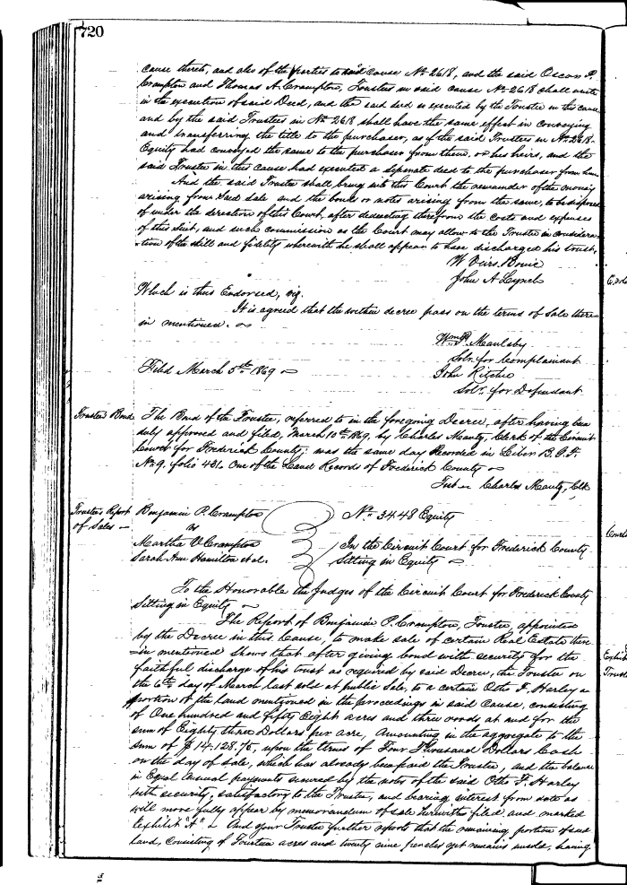 FREDERICK COUNTY CIRCUIT COURT (Equity Record) 1851-1988 0720 Enlarge and print image (181K)  View Transcript  Transcribe |