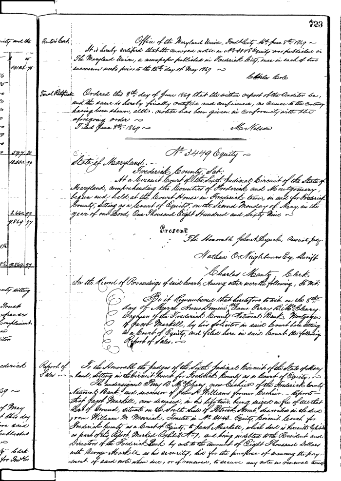 FREDERICK COUNTY CIRCUIT COURT (Equity Record) 1851-1988 0723 Enlarge and print image (166K)  View Transcript  Transcribe |