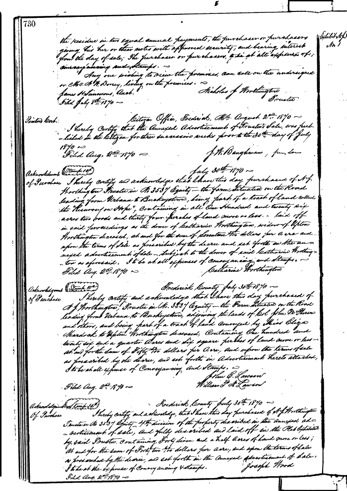 FREDERICK COUNTY CIRCUIT COURT (Equity Record) 1851-1988 0730 Enlarge and print image (179K)  View Transcript  Transcribe |