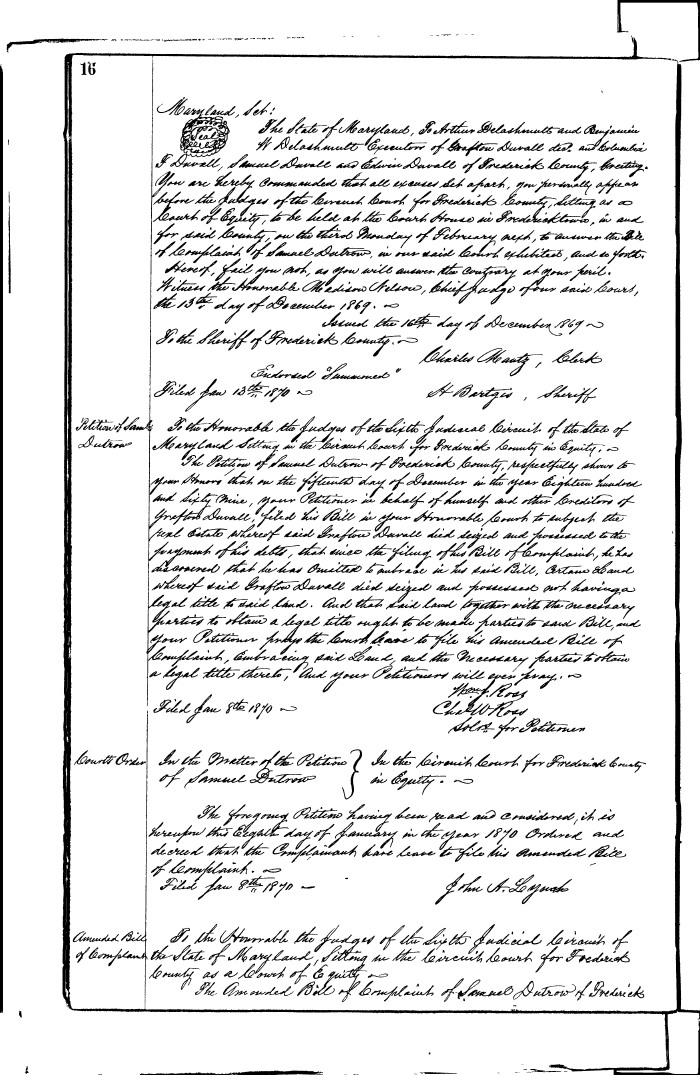 FREDERICK COUNTY CIRCUIT COURT (Equity Record) 1851-1988 0016 Enlarge and print image (154K)  View Transcript  Transcribe |