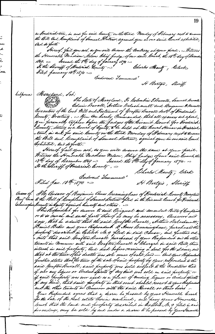 FREDERICK COUNTY CIRCUIT COURT (Equity Record) 1851-1988 0019 Enlarge and print image (179K)  View Transcript  Transcribe |