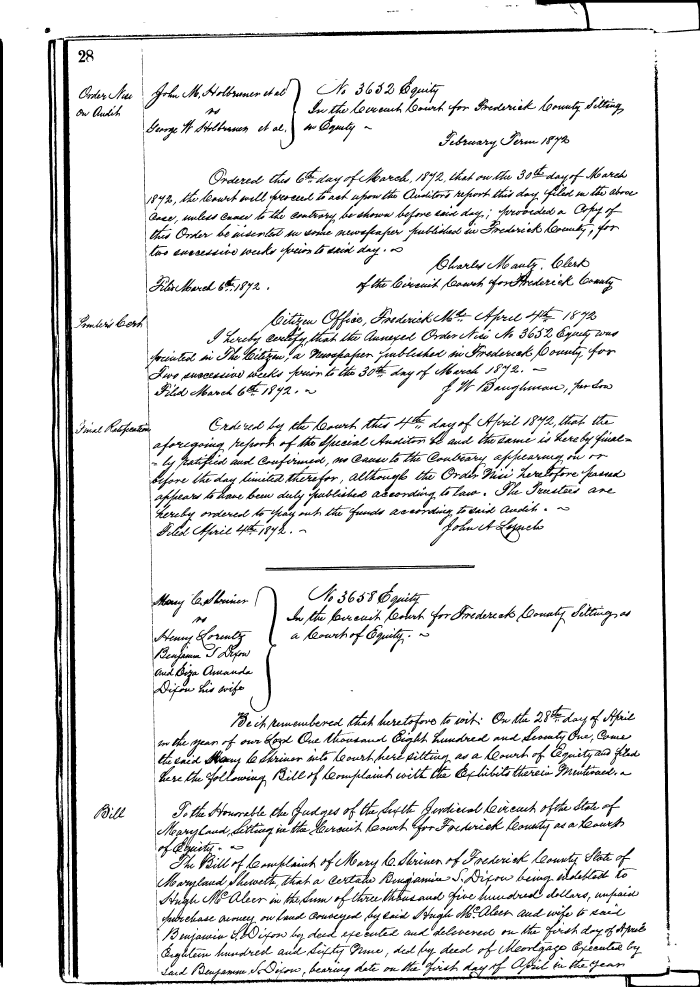 FREDERICK COUNTY CIRCUIT COURT (Equity Record) 1851-1988 0028 Enlarge and print image (146K)  View Transcript  Transcribe |
