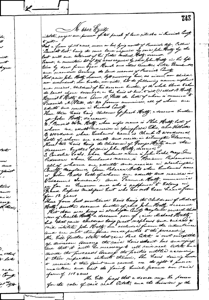 FREDERICK COUNTY CIRCUIT COURT (Equity Record) 1851-1988 0743 Enlarge and print image (162K)  View Transcript  Transcribe |