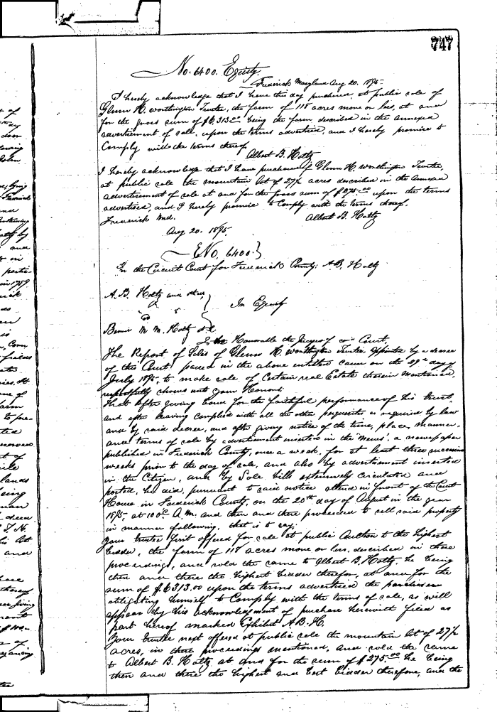 FREDERICK COUNTY CIRCUIT COURT (Equity Record) 1851-1988 0747 Enlarge and print image (152K)  View Transcript  Transcribe |