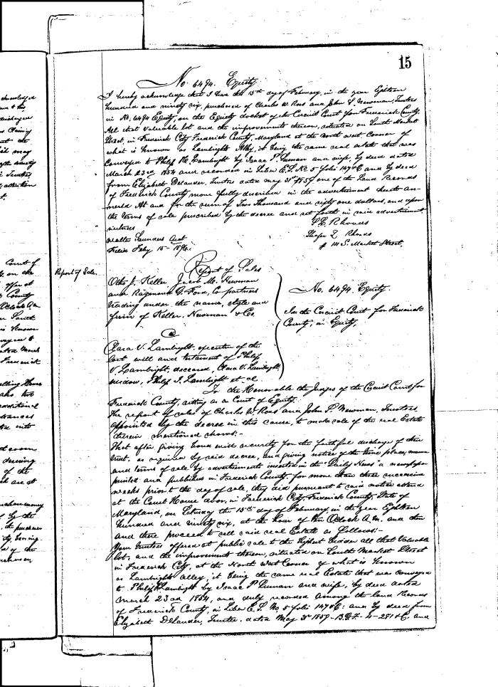 FREDERICK COUNTY CIRCUIT COURT (Equity Record) 1851-1988 0015 Enlarge and print image (174K)  View Transcript  Transcribe |