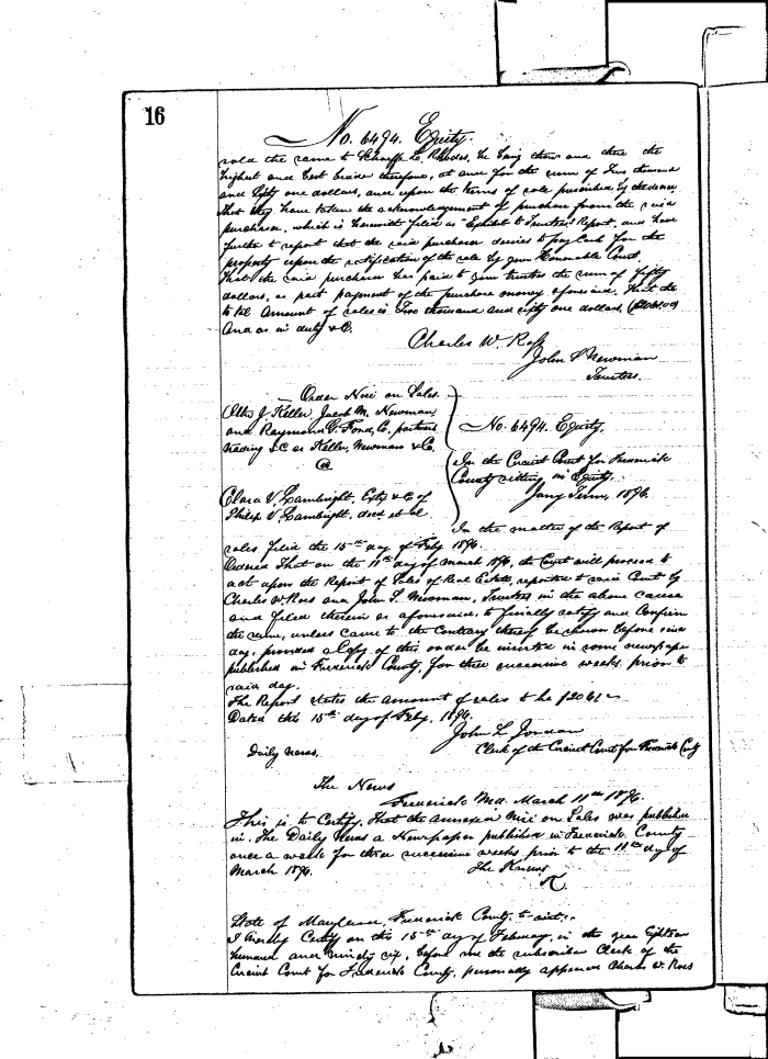FREDERICK COUNTY CIRCUIT COURT (Equity Record) 1851-1988 0016 Enlarge and print image (141K)  View Transcript  Transcribe |