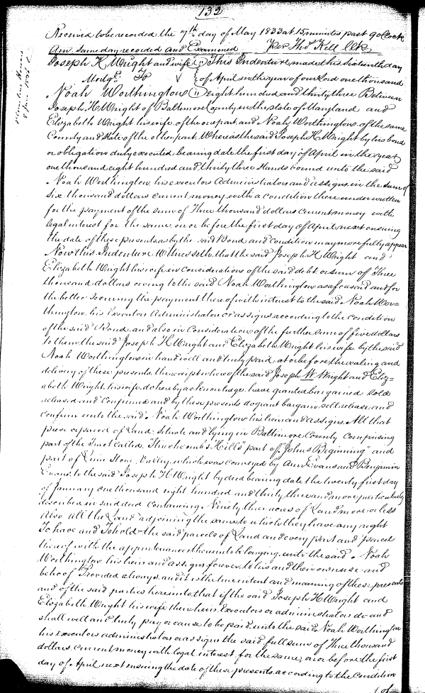 BALTIMORE COUNTY COURT (Land Records) Liber TK 227, 1833, CM 135-314, CR 97,219-2 Image No: cr97219-0759 Enlarge and print image (189K) |