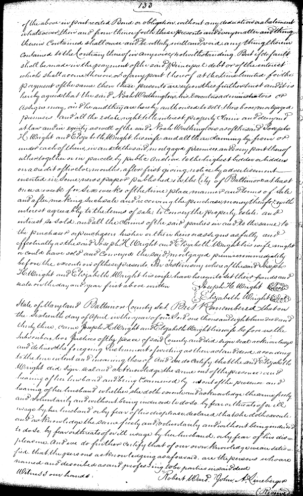 BALTIMORE COUNTY COURT (Land Records) Liber TK 227, 1833, CM 135-314, CR 97,219-2 Image No: cr97219-0760 Enlarge and print image (211K) |