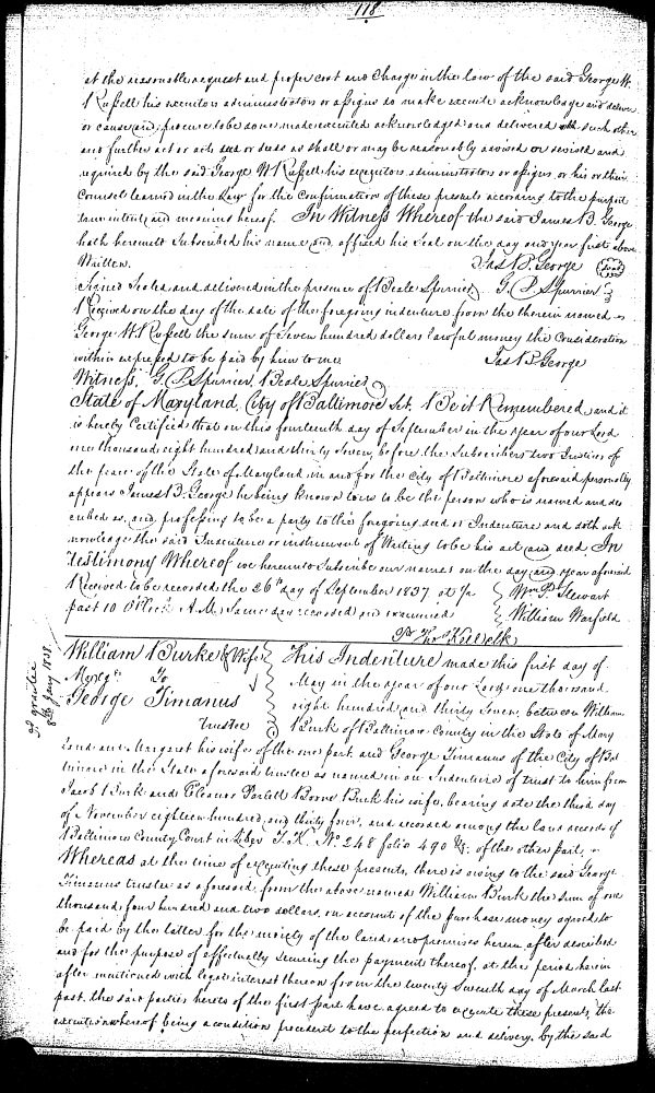 BALTIMORE COUNTY COURT (Land Records) Liber TK 273, 1837, MSA CM 135-360, CR 97,236-2 Image No: cr97236-0743 Enlarge and print image (149K) |