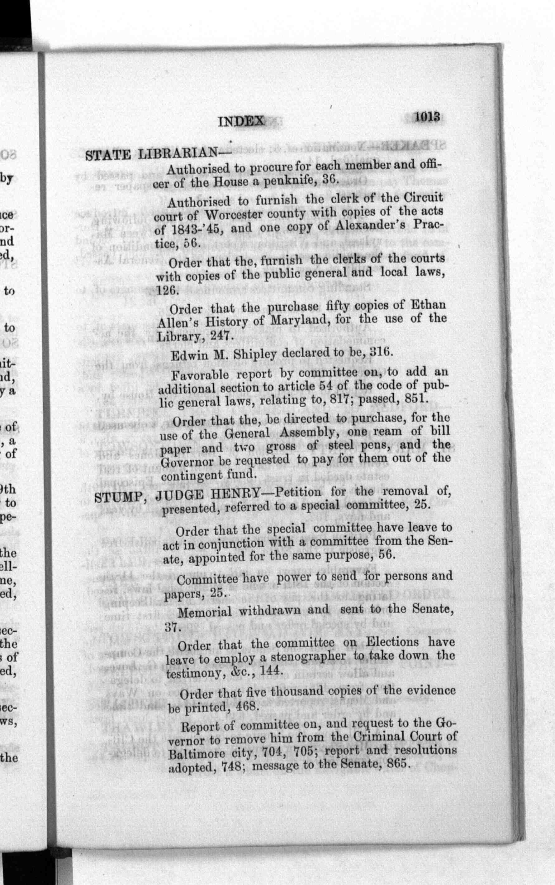 INDEX 1013 STATE LIBRARIAN— Authorised to procure for each member and offi- Authorised to furnish the clerk of the Circuit Order that the, furnish the clerks of the courts Order that the purchase fifty copies of Ethan Edwin M. Shipley declared to be, 316. Favorable report by committee on, to add an Order that the, be directed to purchase, for the STUMP JUDGE HENRY—Petition for the removal of, Order that the special committee have leave to Committee have power to send for persons and Memorial withdrawn and sent to the Senate, Order that the committee on Elections have Order that five thousand copies of the evidence Report of committee on, and request to the Go- |