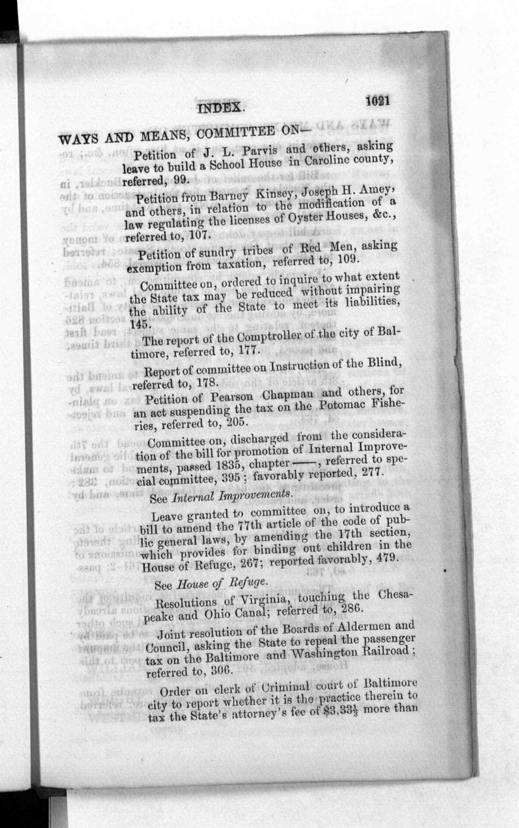 INDEX. 1021 WAYS AND MEANS, COMMITTEE ON— Petition of J. L. Parvis and others, asking Petition from Barney Kinsey, Joseph H. Amey, Petition of sundry tribes of Bed Men, asking Committee on, ordered to inquire to what extent The report of the Comptroller of the city of Bal- Report of committee on Instruction of the Blind, Petition of Pearson Chapman and others, for Committee on, discharged from the considera- See Internal Improvements. Leave granted to committee on, to introduce a See House of Refuge. Resolutions of Virginia, touching the Chesa- Joint resolution of the Boards of Aldermen and Order on clerk of Criminal court of Baltimore |
