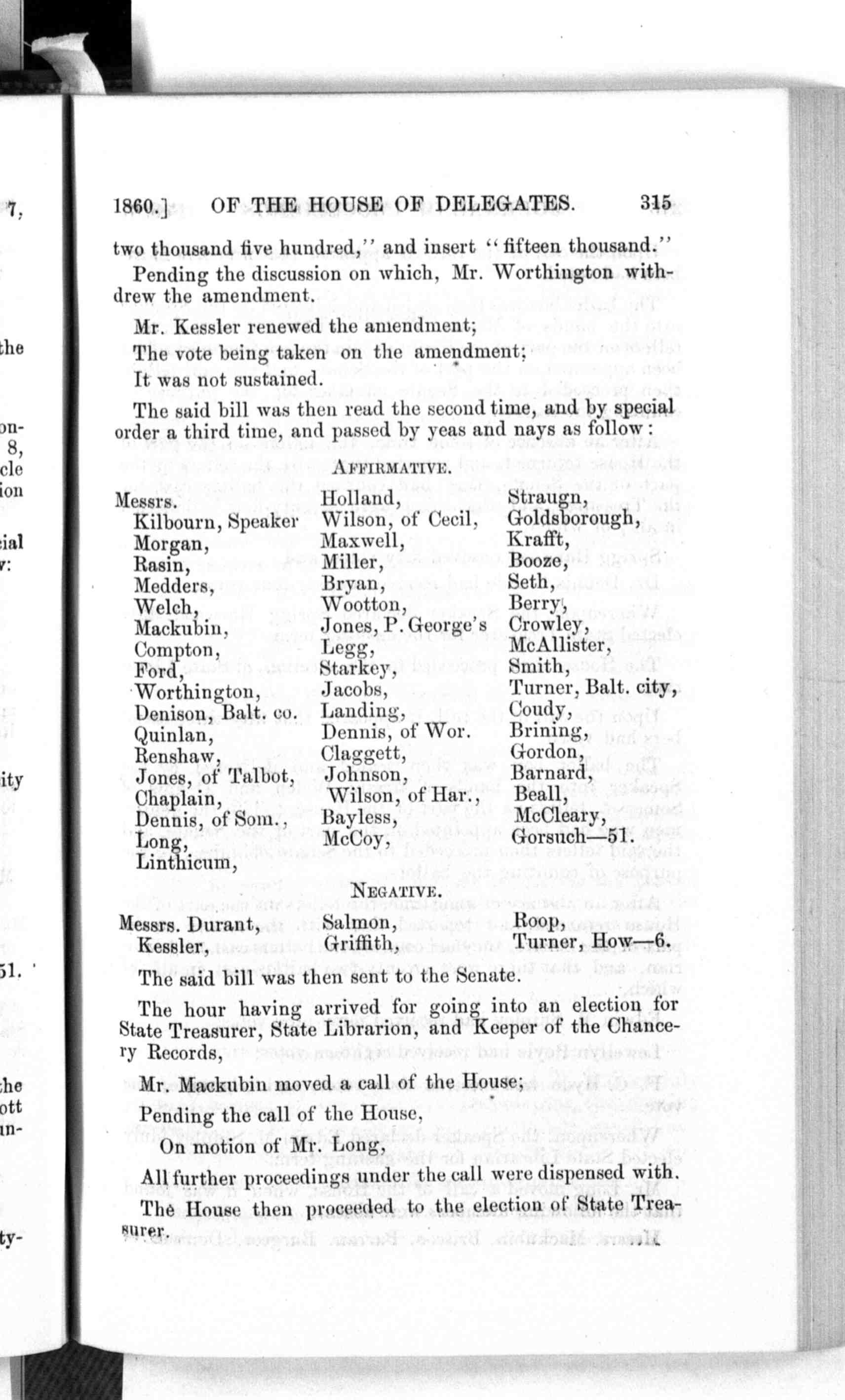 1860.] OF THE HOUSE OF DELEGATES. 315 two thousand five hundred," and insert "fifteen thousand." Mr. Kessler renewed the amendment; The vote being taken on the amendment; The said bill was then read the second time, and by special