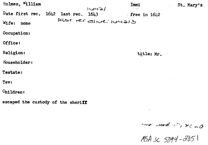 Dr. Lois Green Carr Men's Career Files MSA SC 5094 Image No: sc5094-2051-1 Enlarge and print image (172K) << PREVIOUS NEXT >> |