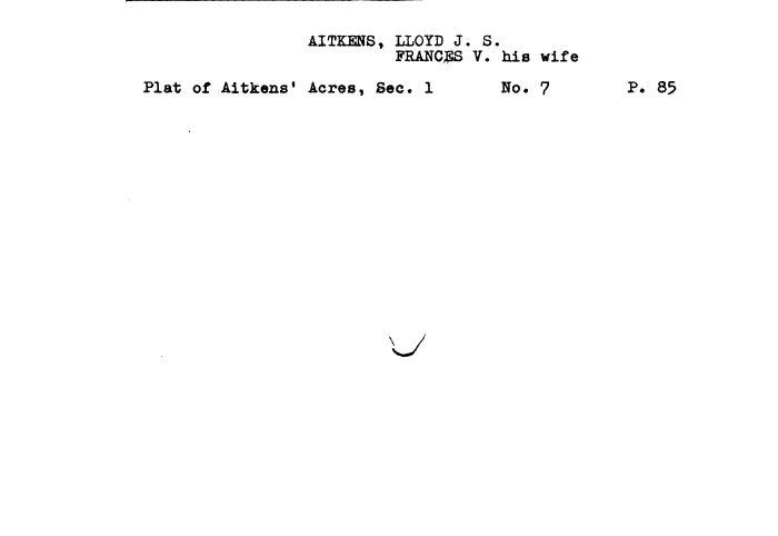 | AITKENS, LLOYD J. S. FRANCES V. his wife Plat of Aitkens1 Acres, Sec. 1 No. 7 P. 85 |