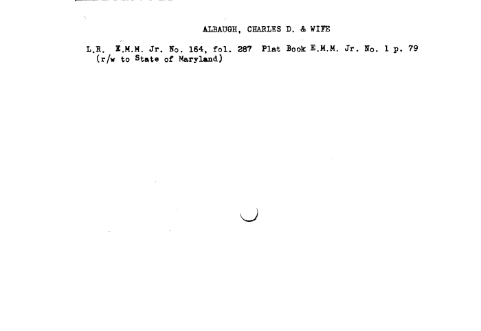 | ALBAUGH, CHARLES D. & WIFE L.R. E.M.M. Jr. No. 164, fol. 287 Plat Book E.M.M. Jr. No. 1 p. 79 (r/w to State of Maryland) |